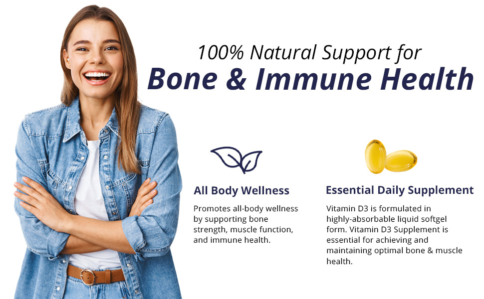 Support your overall wellness with our high-potency Vitamin D3 supplement. Ideal for those with limited sun exposure, athletes, and health-conscious individuals.