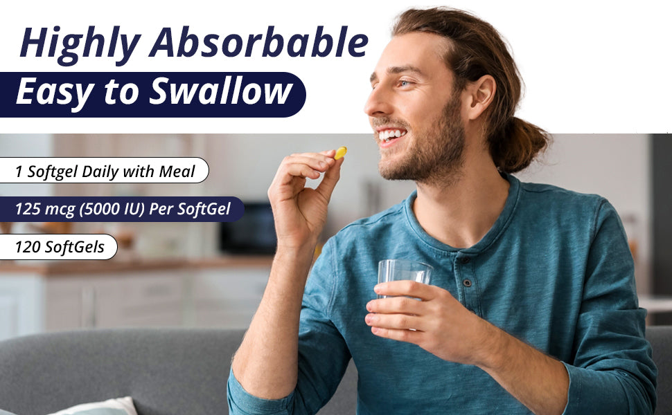 ✔️ Highly Absorbable Formula: Softgels with olive oil and safflower oil for optimal D3 (cholecalciferol) absorption.